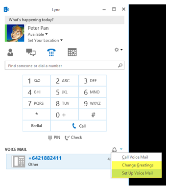 - Lync – Voicemail can be retrieved from the Lync client by selecting the phone tab. To play the voicemail hover over the left hand side of the message and then select the play button: